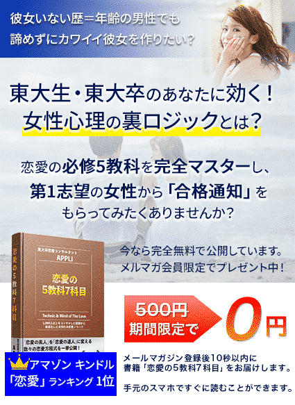 そんな僕らの指導内容をギュッと凝縮したのが「恋愛の5教科7科目」です。ぜひ今すぐに手に入れてください。