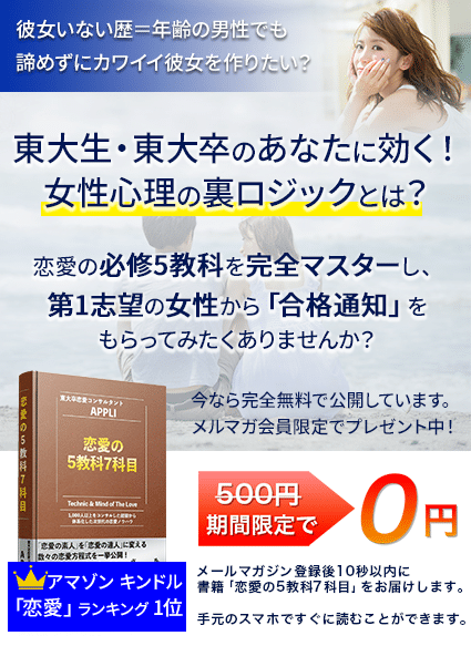 そんな僕らの指導内容をギュッと凝縮したのが「恋愛の5教科7科目」です。ぜひ今すぐに手に入れてください。