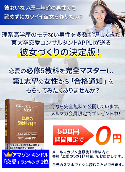 そんな僕らの指導内容をギュッと凝縮したのが「恋愛の5教科7科目」です。ぜひ今すぐに手に入れてください。