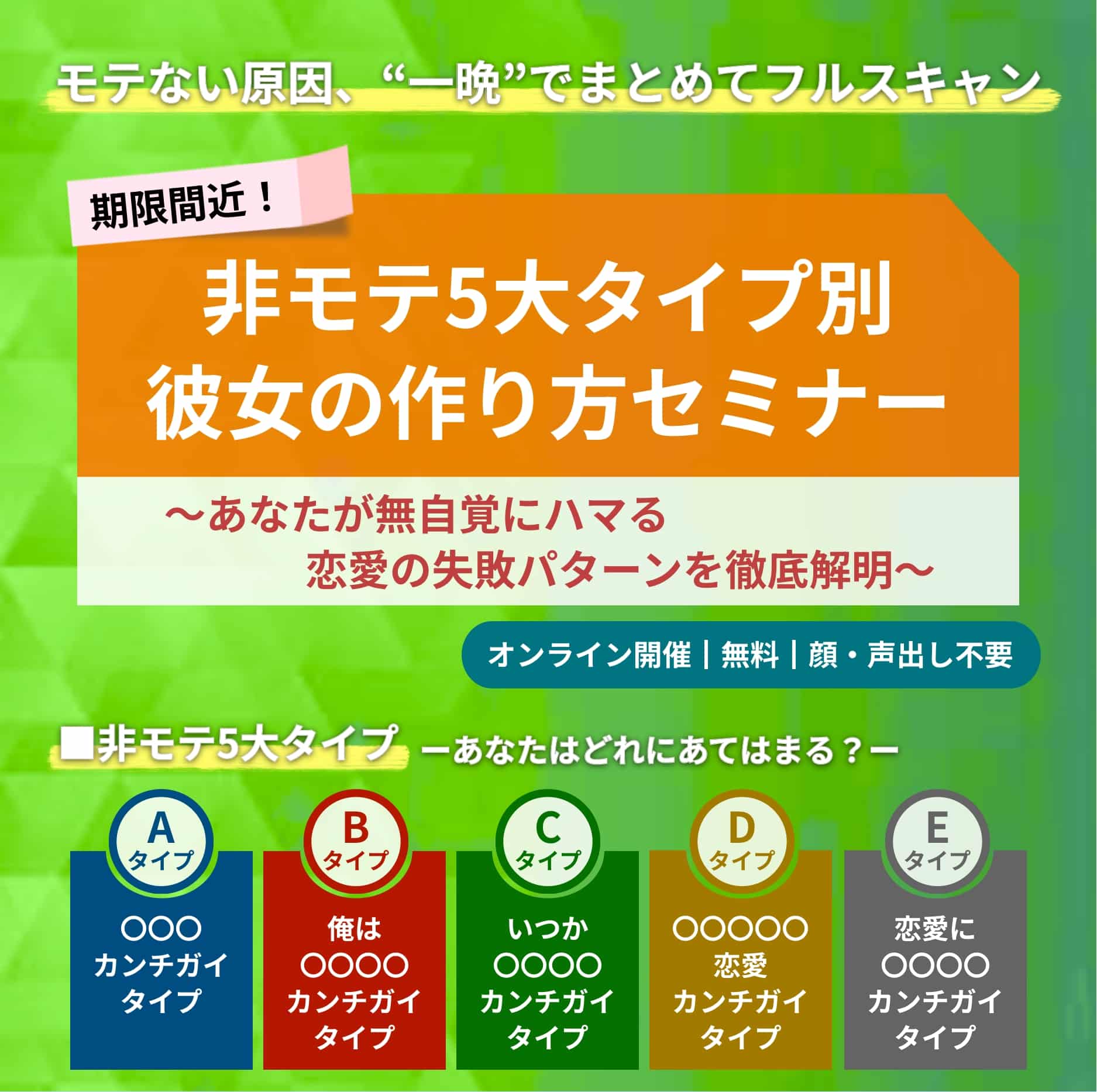 12月30日 21:00〜 非モテ5大タイプ診断セミナー